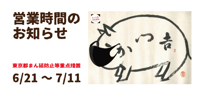 6/1~6/20の営業時間について(緊急事態宣言による時短営業)