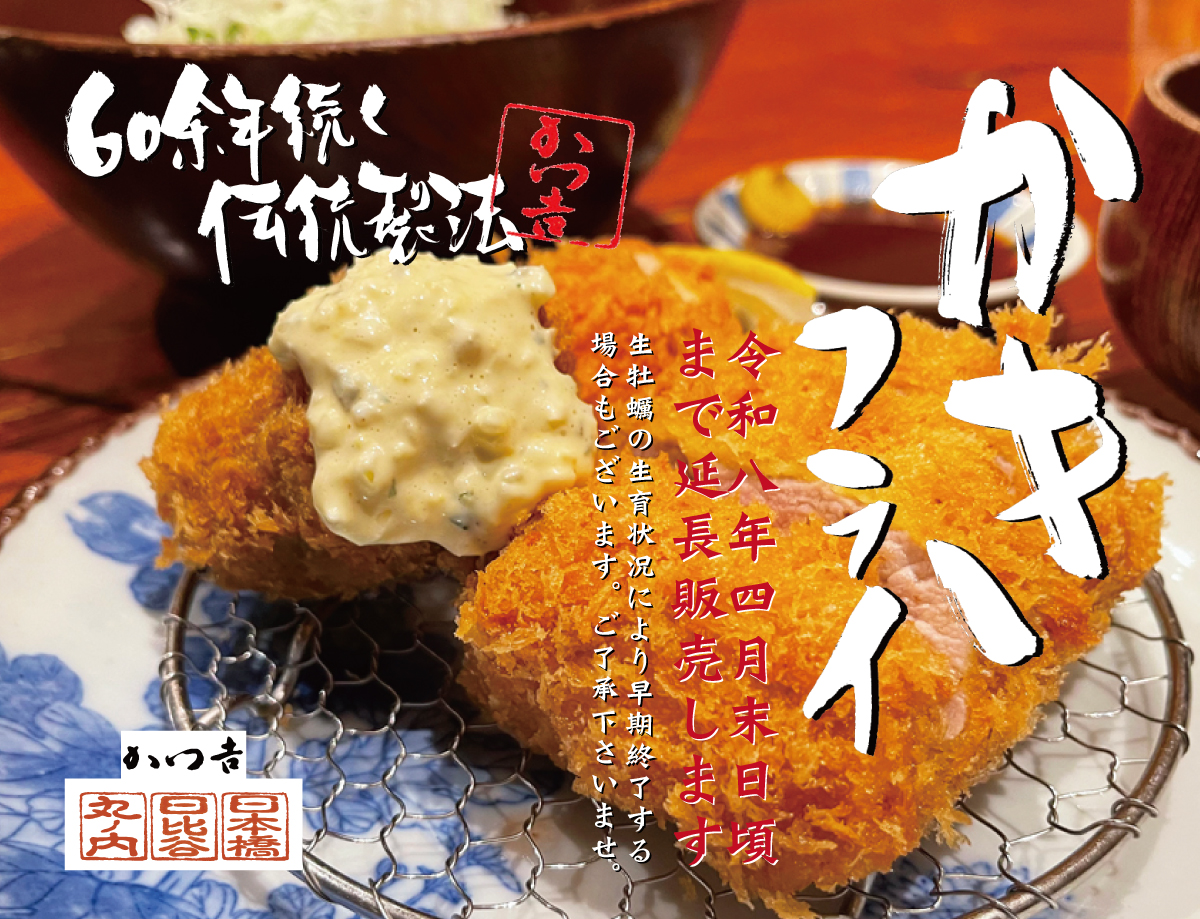 - 新着情報2026.03.03旬をもう少しだけ。かきフライ4月末頃まで。