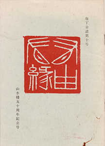 (題字の篆刻(てんこく)『有由有縁(よしありえんあり)』は