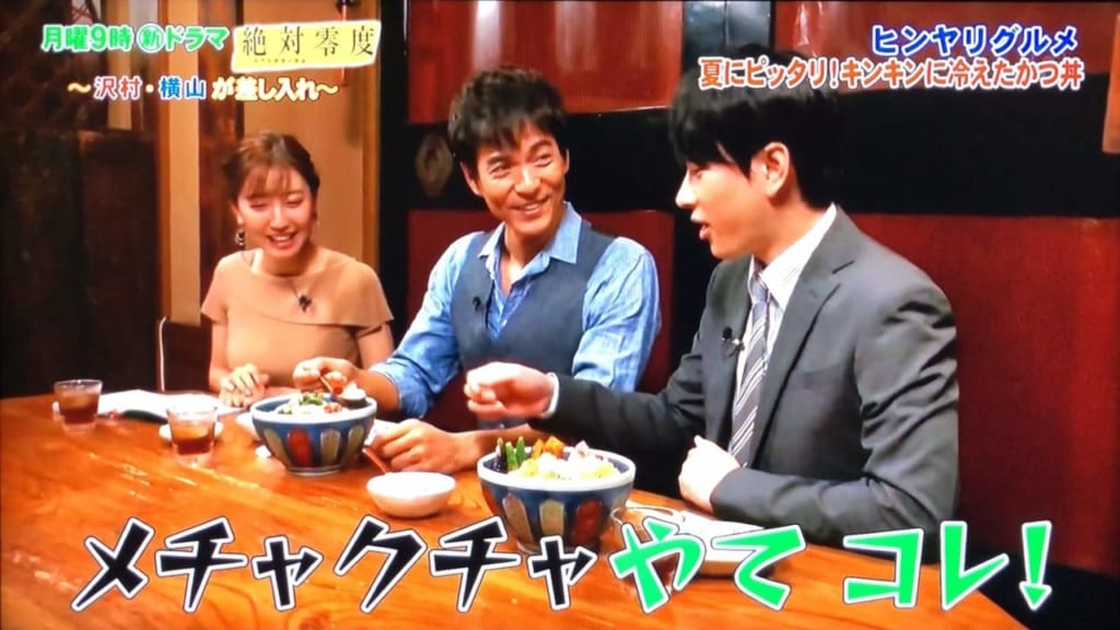 絶対零度という刑事ドラマをご存知ですか?今年も続編(Season4)が放送された人気ドラマですのでご存知の方も多いでしょう。その番組の宣伝も兼ねた特番(もしもツアーズ)にて「零度(0℃)に近いお料理=冷やしかつ丼」のご紹介をして頂きました。