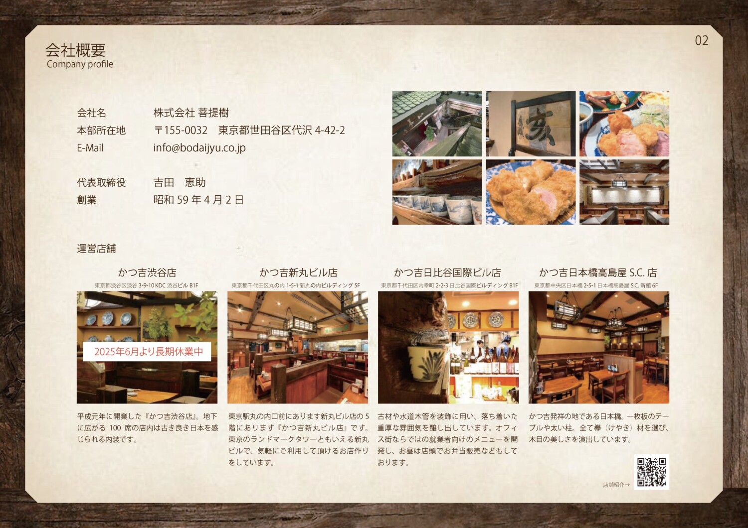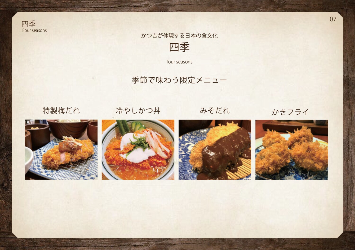 1958年創業「とんかつと旬のお料理かつ吉」ブランドブックです。