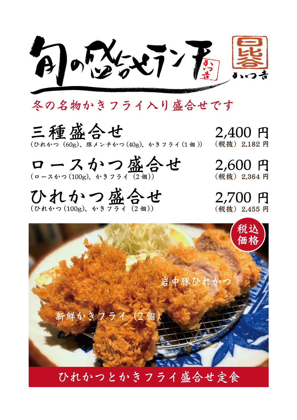 ロースかつ盛合せランチ(国産銘柄豚ロースかつと旬フライ(2個))2,500円