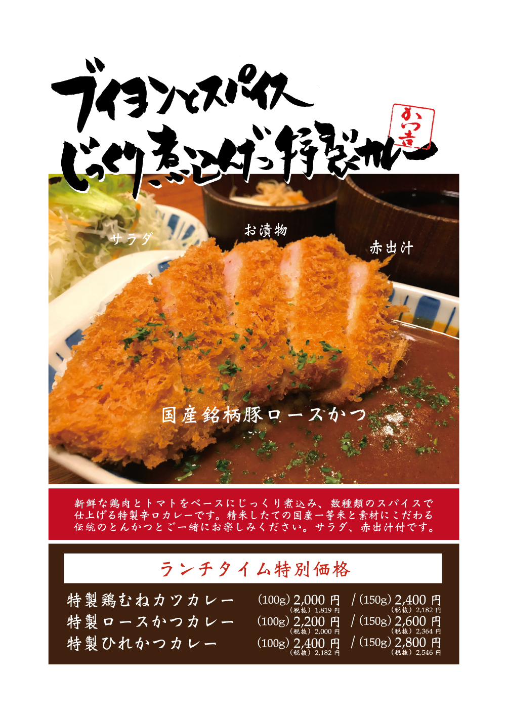鶏むねかつカレー(100g)2,000円(150g)2,400円