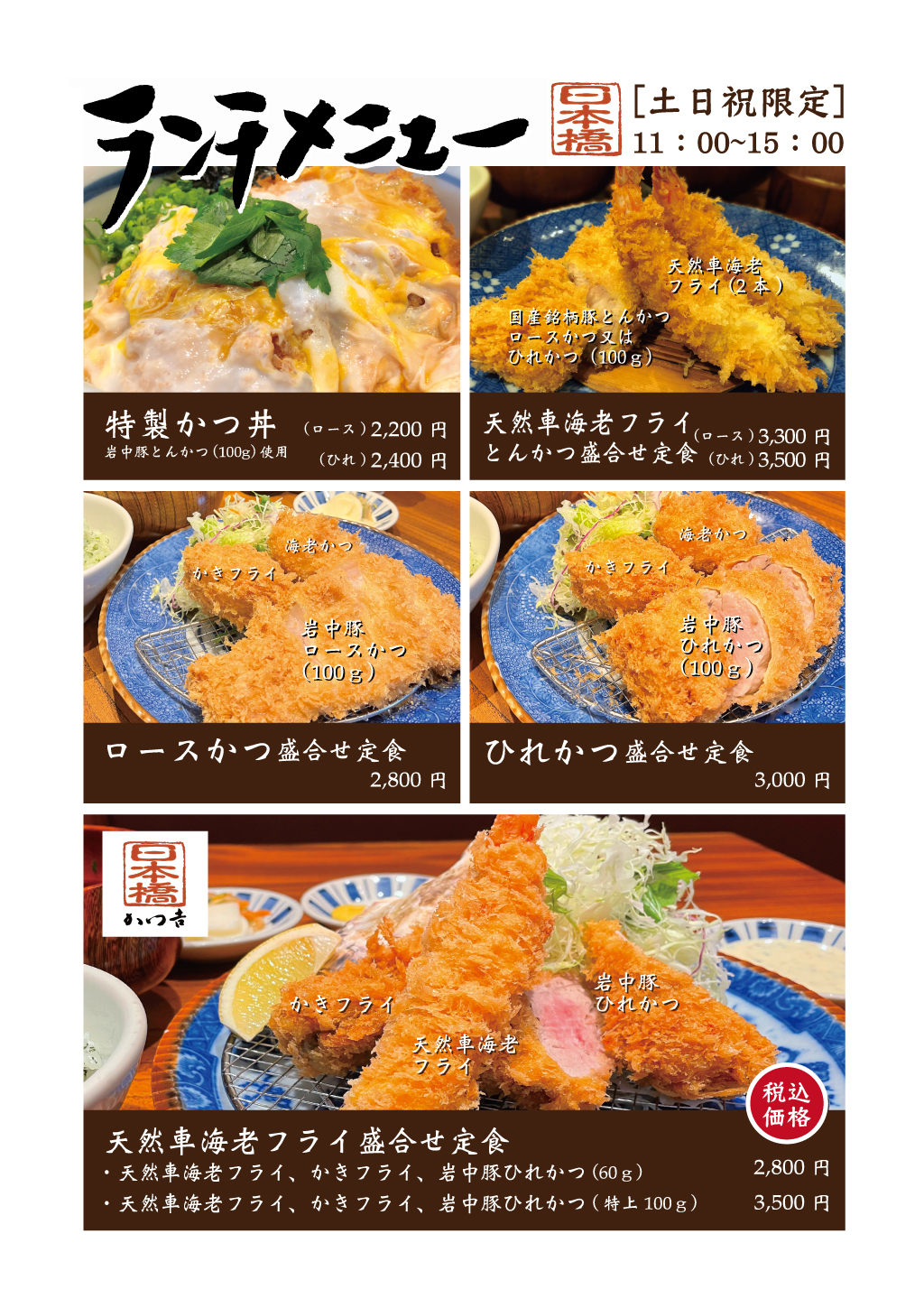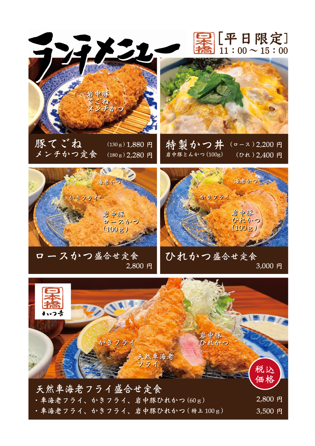 かつ吉日本橋高島屋S.C.店のメニューをご紹介いたします。